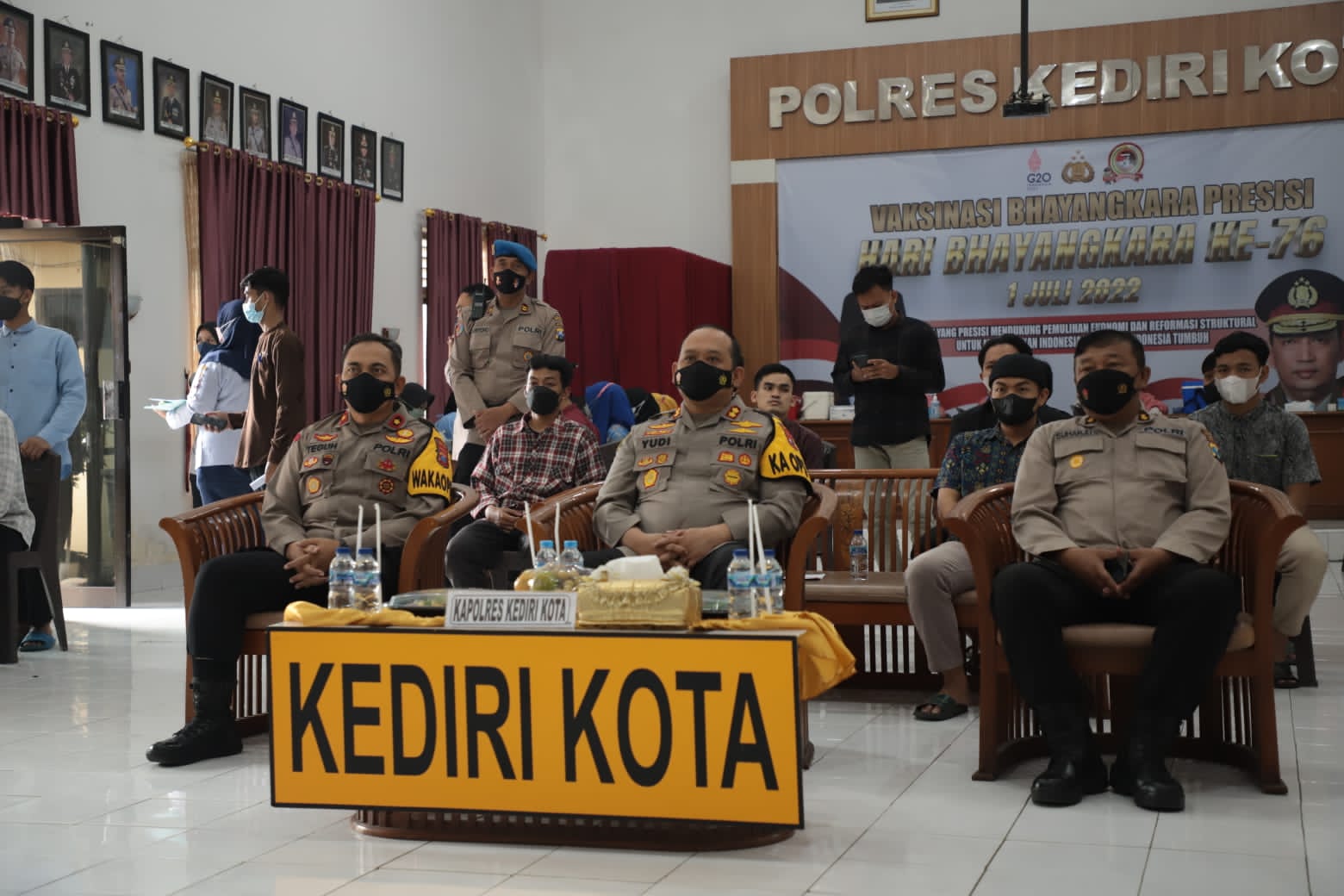“Kegiatan vaksinasi yang dilaksanakan kali ini, selain untuk membantu program pemerintah dalam percepatan vaksinasi juga dalam rangka Bakti Kesehatan Polres Kediri Kota menyambut hari Bhayangkara ke-76,”.