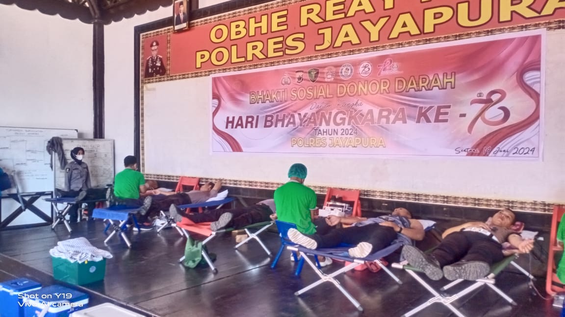 Kegiatann tersebut diikuti Personel Polres Jayapura, Batalyon 751, Lanud Silas Papare, Rindam XVII Cenderawasih serta Bhayangkari Cabang Jayapura bekerja sama dengan Sie Dokes Polres Jayapura dan PMI Kab. Jayapura.