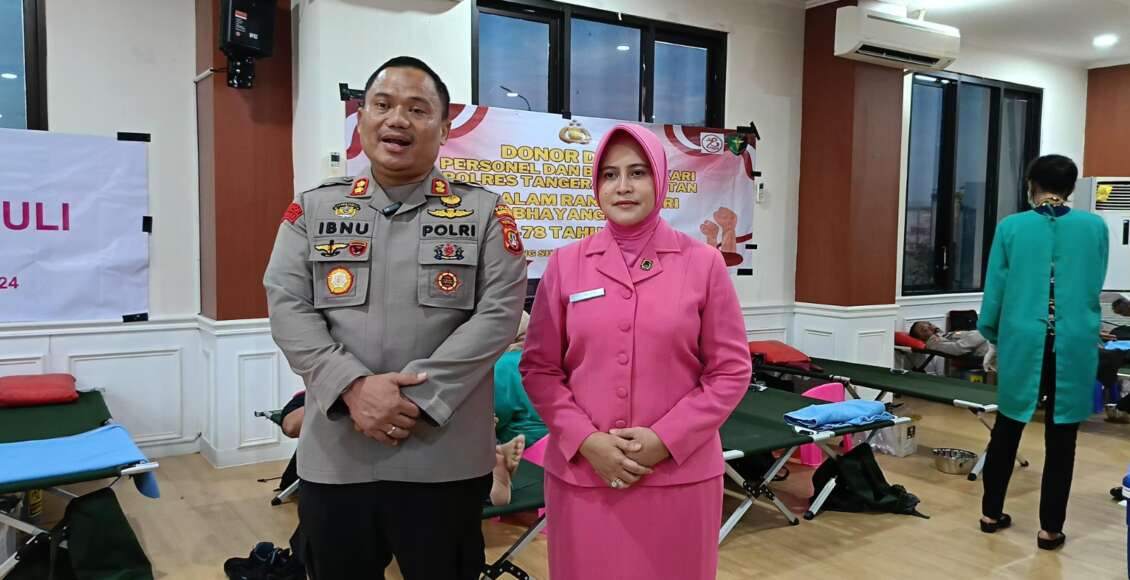 Kapolres Tangsel AKBP Ibnu Bagus Santoso, S.I.K., M.M., M.H. yang turut mendonorkan darahnya menjelaskan bahwa kegiatan donor darah tersebut merupakan Bhakti Polri dalam rangka memperingati hari Bhayangkara 1 Juli 2024 yang ke-78.