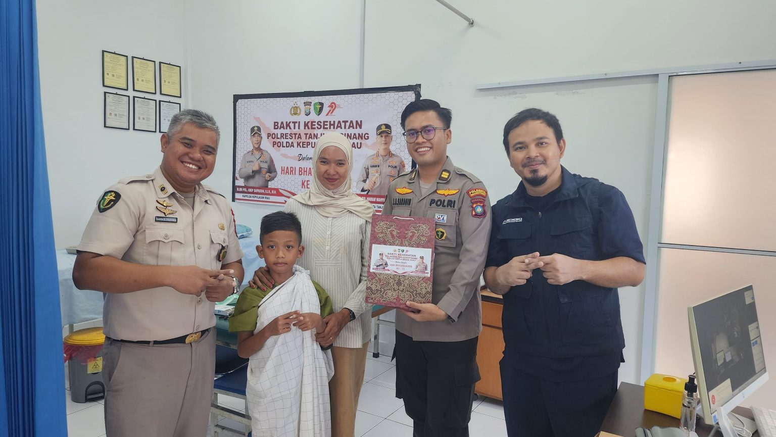 TANJUNGPINANG,ikagawanews.id – Dalam rangka menyambut HUT Bhayangkara ke- 79 tahun 2025, Polresta Tanjungpinang melaksanakan kegiatan bakti kesehatan berupa khitan (sunat) gratis.