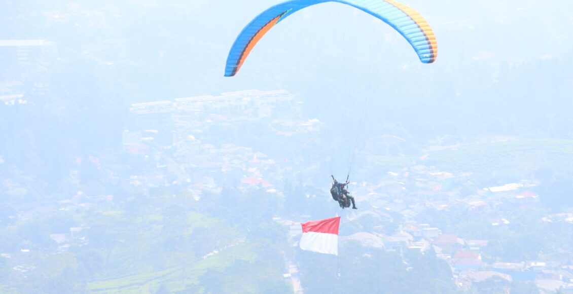 BOGOR,ikagawanews.id – Pengibaran bendera merah putih melalui penerbangan paralayang di gelar Polres Bogor di Gantole yang berada di kawasan Cisarua puncak Bogor, Pada Kamis (23/06).