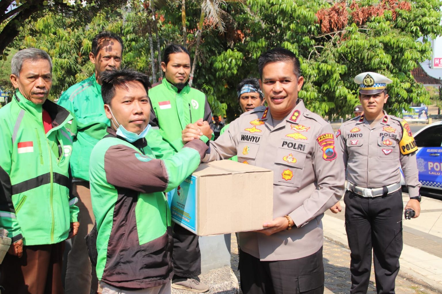 Disampaikan pula oleh AKBP Wahyu Rohadi, bahwa sebelumnya pihaknya juga melaksanakan bakti sosial kepada anggota ojek online di taman Dadi Kajen Tugu 0 Km Kec. Kajen.