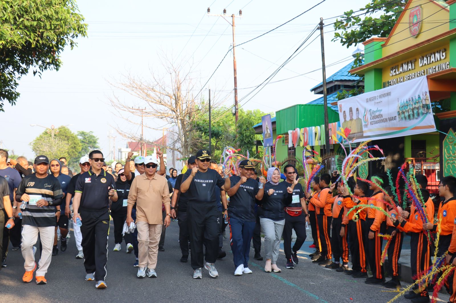 Sambut Hari Ulang Tahun Kabupaten Kotawaringin Barat ke 64,Kapolres Kobar Ikuti Jalan Sehat Bersama PJ Bupati