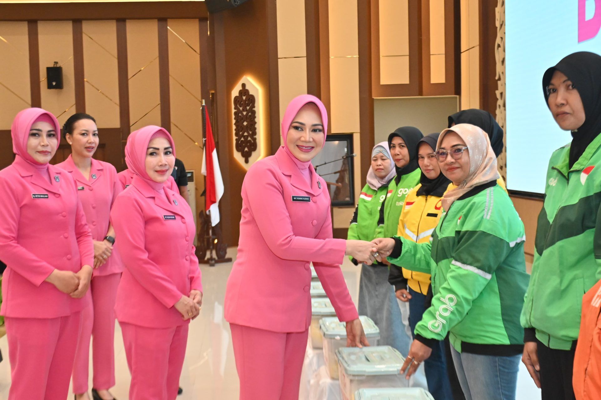 Ketua Bhayangkari Daerah Kalsel Ny. Yennie Rosyanto Yudha menyampaikan, dalam kegiatan ini bantuan yang dibagikan kepada 500 ojol berupa beras SPHP dan minyak goreng.