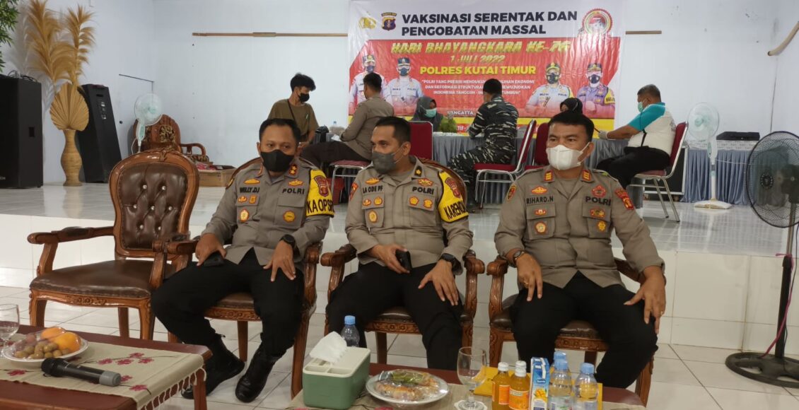Sambut HUT Bhayangkara Ke 76,Polres Kutai Timur Gelar Vaksinasi Serentak Dan Pengobatan Massal
