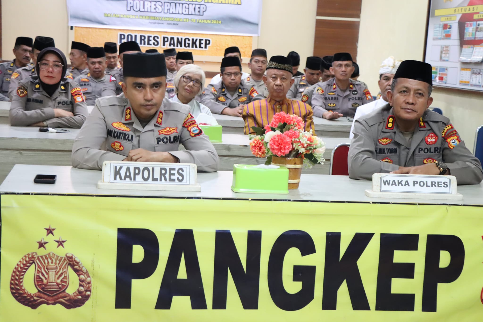 ”Mudah-mudahan dengan momentum hari Bhayangkara ini, kita berdo’a bersama berharap sinergitas dan soliditas Polri bersama seluruh stakeholder masyarakat di Kabupaten Pangkep, baik itu tokoh agama, tokoh masyarakat maupun organisasi adat dan lainnya dapat terus terjaga dan ditingkatkan untuk bersama-sama menjaga kondusifitas kamtibmas di Kabupaten Pangkep ini,” pungkasnya.