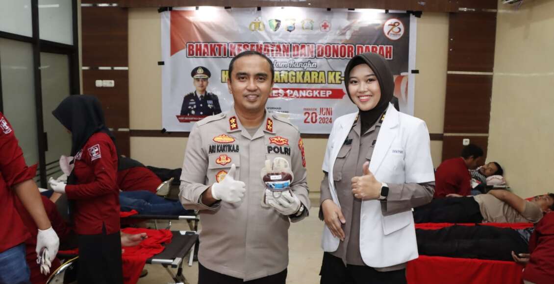 Kapolres Pangkep AKBP Ari Kartika Bhakti, S.I.K., M.K.P., menyampaikan, Donor Darah, Rikkes dan pengobatan gratis tersebut merupakan bentuk kepedulian sosial terhadap sesama sekaligus sebagai bentuk Pelayanan kepada masyarakat yang membutuhkan.
