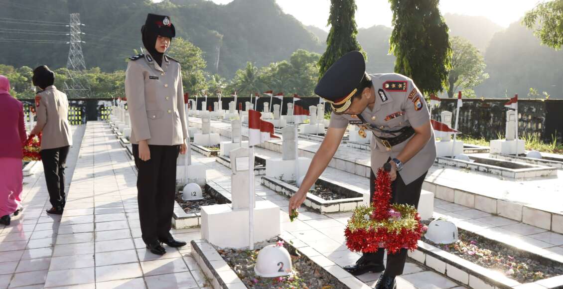 Ziarah tabur bunga merupakan salah satu kegiatan rutin tahunan untuk menyambut hari Bhayangkara. Kita kenang atas jasa-jasa pendahulu kita yang sudah berjuang untuk bangsa tercinta ini,” ujarnya