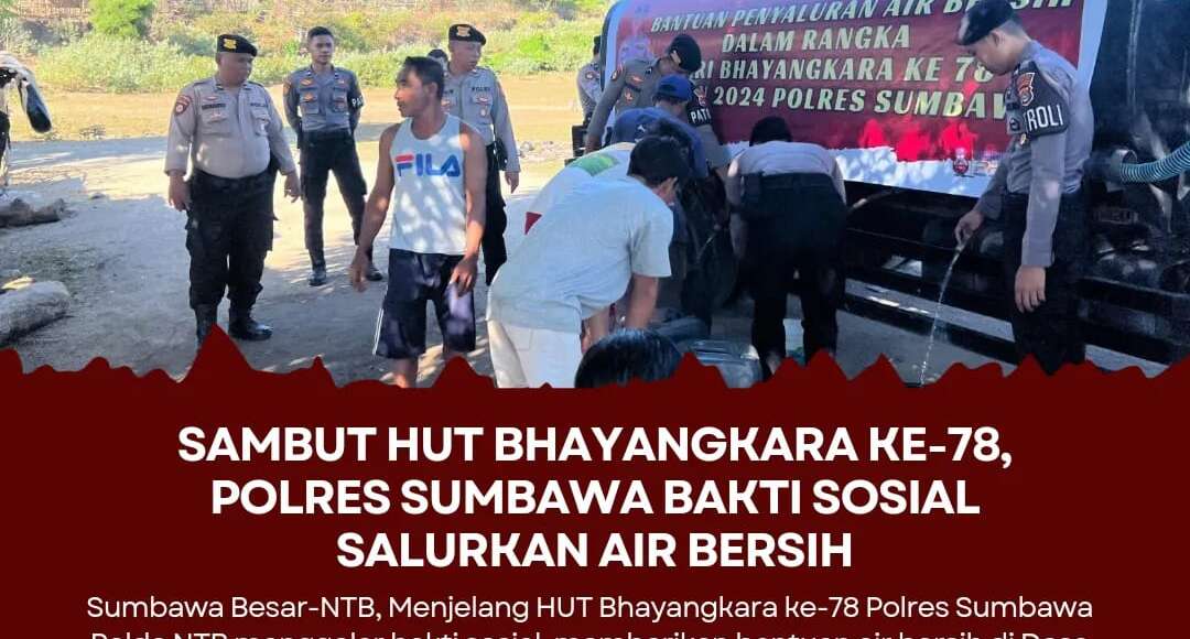 Sambut HUT Bhayangkara ke- 78, Polres Sumbawa Bakti Sosial Salurkan Air Bersih