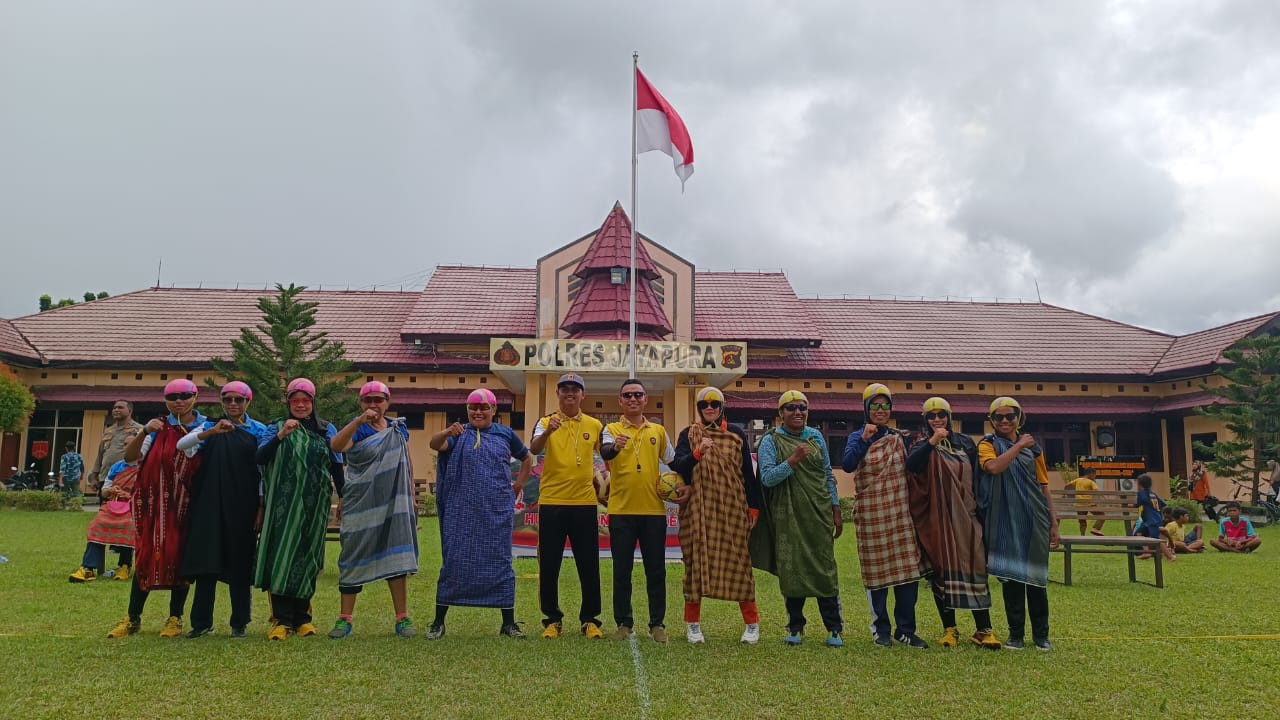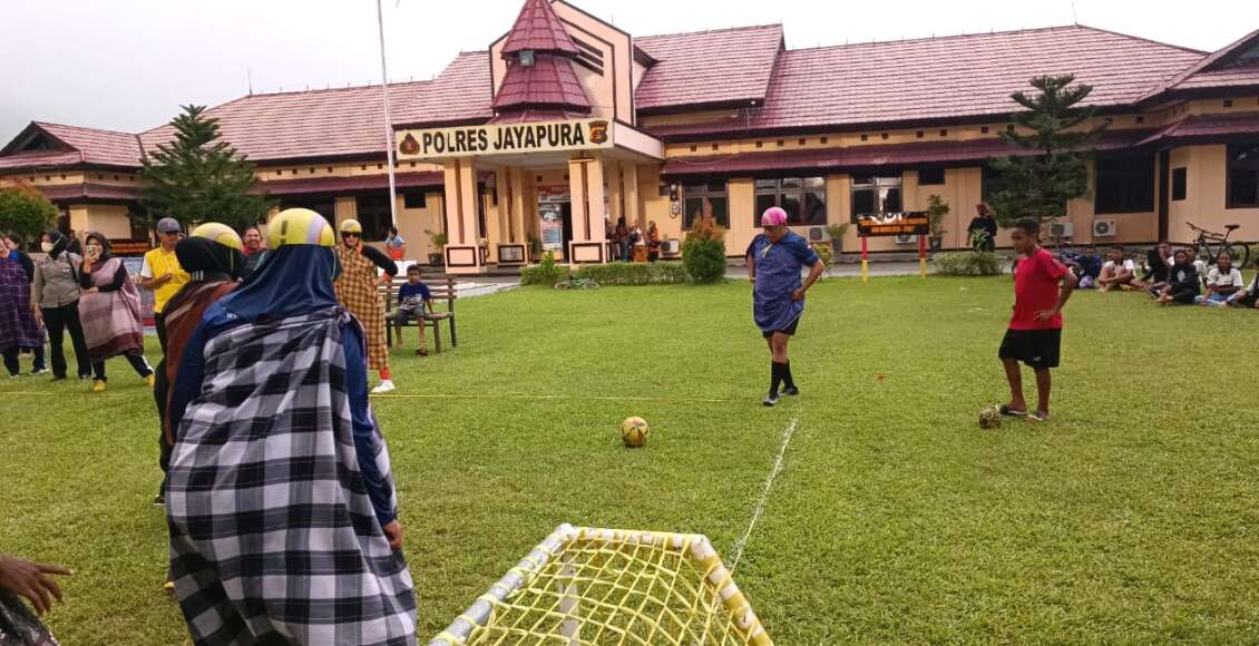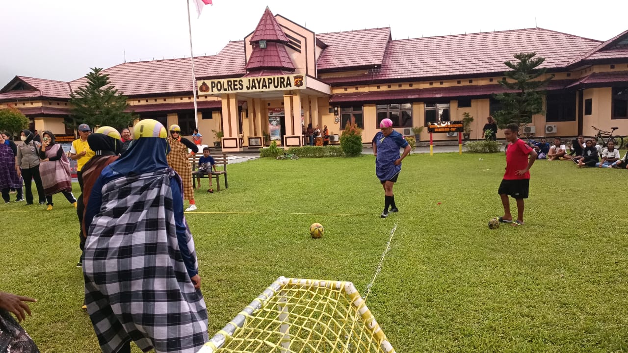 Disaksikan langsung Kapolres Jayapura AKBP Fredrickus W.A Maclarimboen, S.I.K., M.H didampingi Ketua Bhayangkari Cabang Jayapura Ny. Deby Fredrickus Maclarimboen, pertandingan menjadi tontonan menarik dengan aturan memakai sarung, kacamata dan helm (bola plastik).