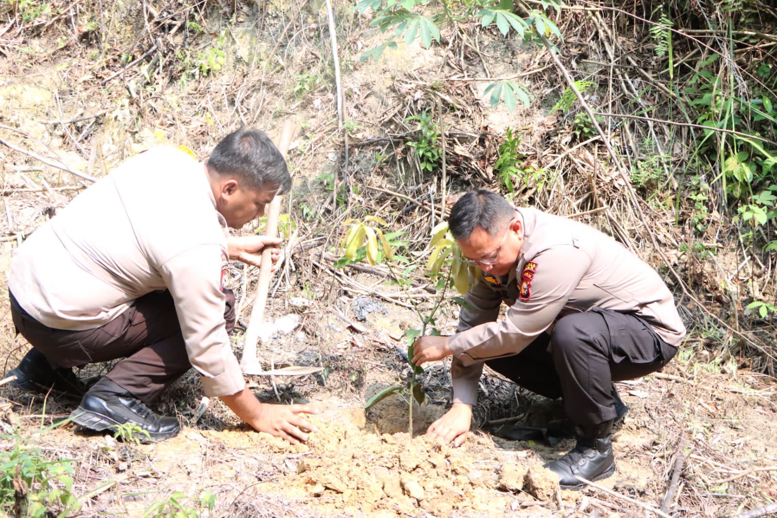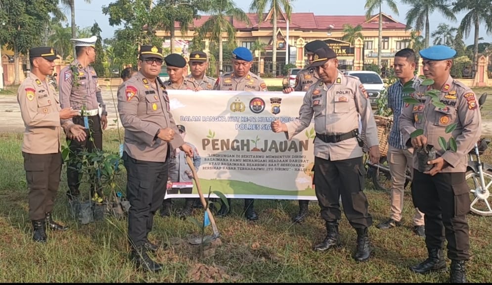Sambut HUT Humas Polri Ke-72 Tahun 2023, Polres Siak Lakukan Kegiatan Penghijauan