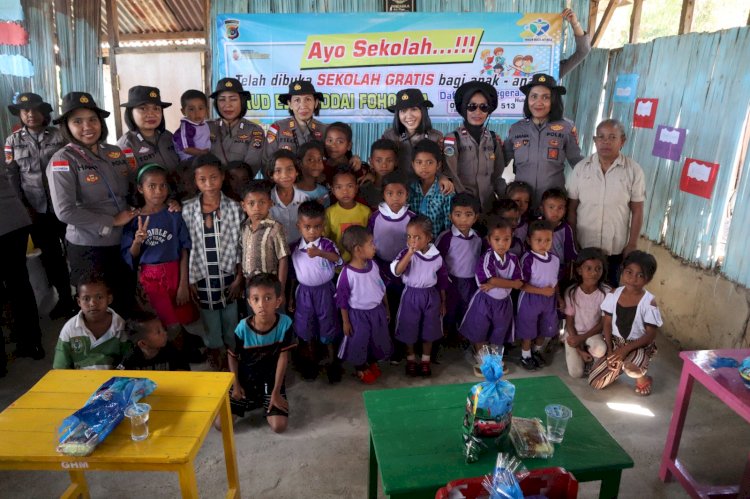 Dipimpin Kepala Bagian Perencanaan (Kabag Ren), AKP Filomena Bene Bere, SH selaku Perwira Kordinator (Pakor) Polwan, sejumlah srikandi yang bertugas di berbagai satuan fungsi ini, menggelar kegiatan sosial dengan mengunjungi anak-anak PAUD kampung Fohomea, RT 31, kelurahan Manumutin, kecamatan Kota Atambua, kabupaten Belu.