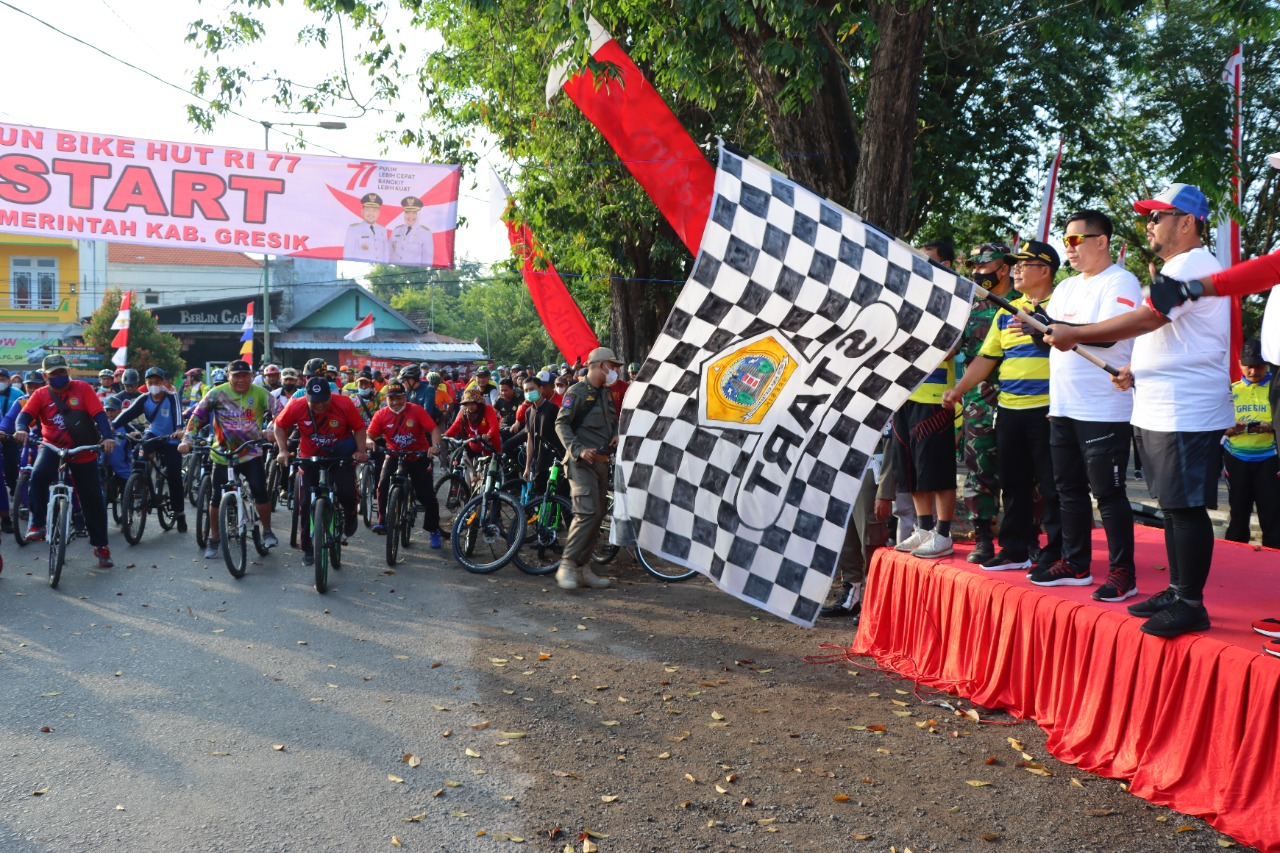 “Bersepeda sebagai salah satu bentuk upaya kita dalam mewujudkan masyarakat Kabupaten Gresik yang sehat,” Ujarnya sebelum memberangkatkan peserta Fun Bike, pada Minggu (7/8/2022) pagi.