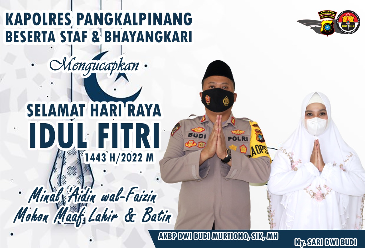 Sambut Idul Fitri 1443 H 2022 M, Kapolres Pangkalpinang Sampaikan Ucapan Selamat Idul Fitri dan Permohonan Maaf Lahir Batin