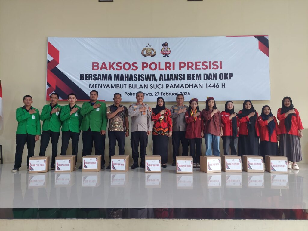 GOWA,ikagawanews.id – Polres Gowa menggelar kegiatan Bakti Sosial (Baksos) Polri Presisi bersama mahasiswa, aliansi Badan Eksekutif Mahasiswa (BEM), dan organisasi kepemudaan (OKP) dalam rangka menyambut bulan suci Ramadan 1446 H.