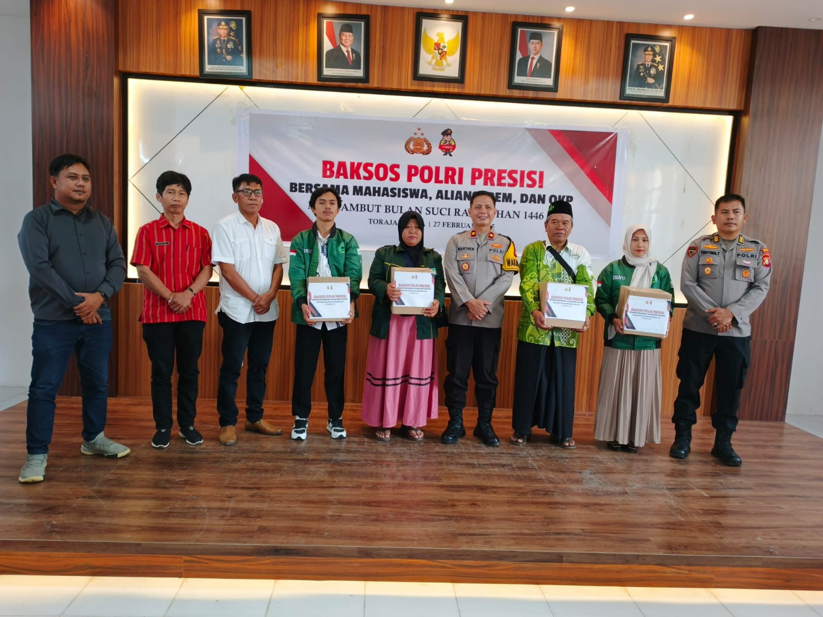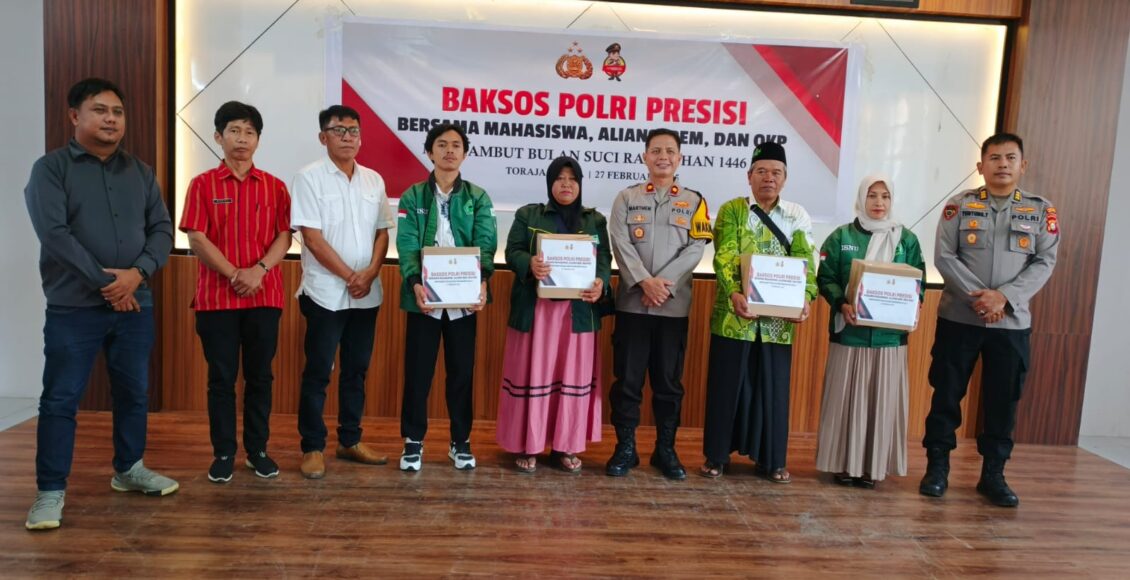 TORAJA UTARA,ikagawanews.id – Kepolisian Resor Toraja Utara bekerja sama dengan OKP sekabupaten Toraja Utara melaksanakan kegiatan Bakti Sosial Presisi Polri dengan menyalurkan ratusan paket sembako kepada warga tidak mampu, Kamis (27/02/2025).