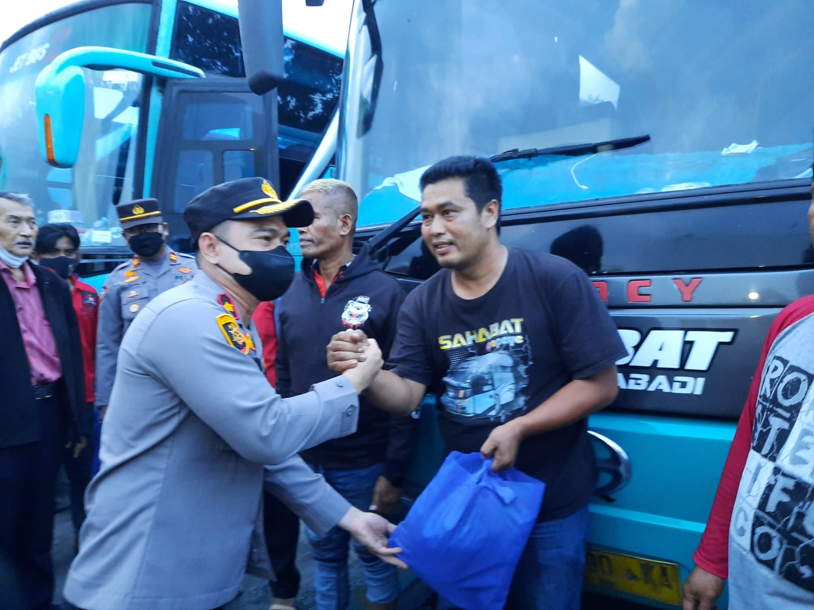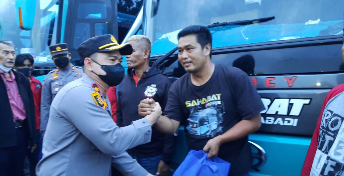 CIREBON KOTA,ikagawanews.id –  Polres Cirebon Kota bersama elemen masyarakat bagikan 1000 paket sembako kepada para supir angkutan umum dan bus yang terdampak kenaikan BBM subsidi di terminal harjamukti Kota Cirebon.