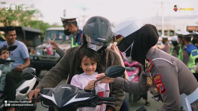 Kasat Lantas Polres Aceh Besar AKP Rina bintar handayani, S.I.K., M.M bersama seluruh anggota satlantas melaksanakan kegiatan dikmas lantas dan pembagian takjil yang dikemas dalam program “NgabubuRide” Sat lantas Polres Aceh Besar.