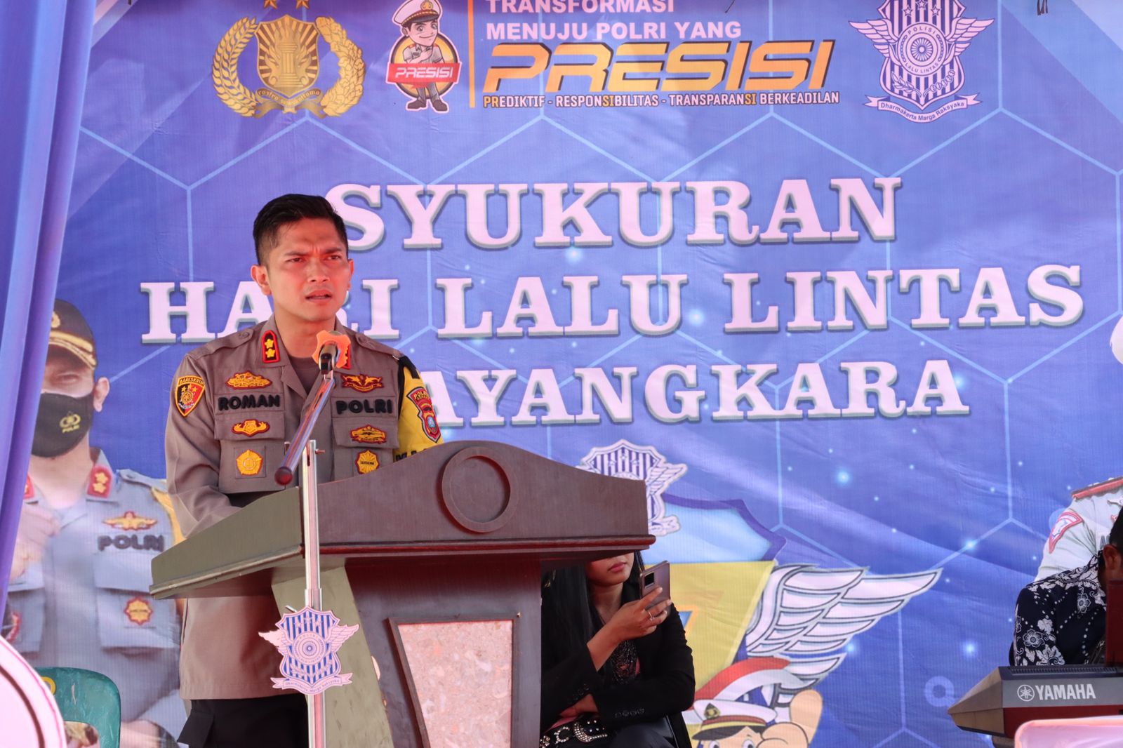 Sementara sambutan dari Kapolres Asahan AKBP Roman Smaradhana Elhaj SH SIK MH menyampaikan Selamat atas Syukuran Hari Lalu Lintas Bhayangkara Ke-67 Tahun 2022.