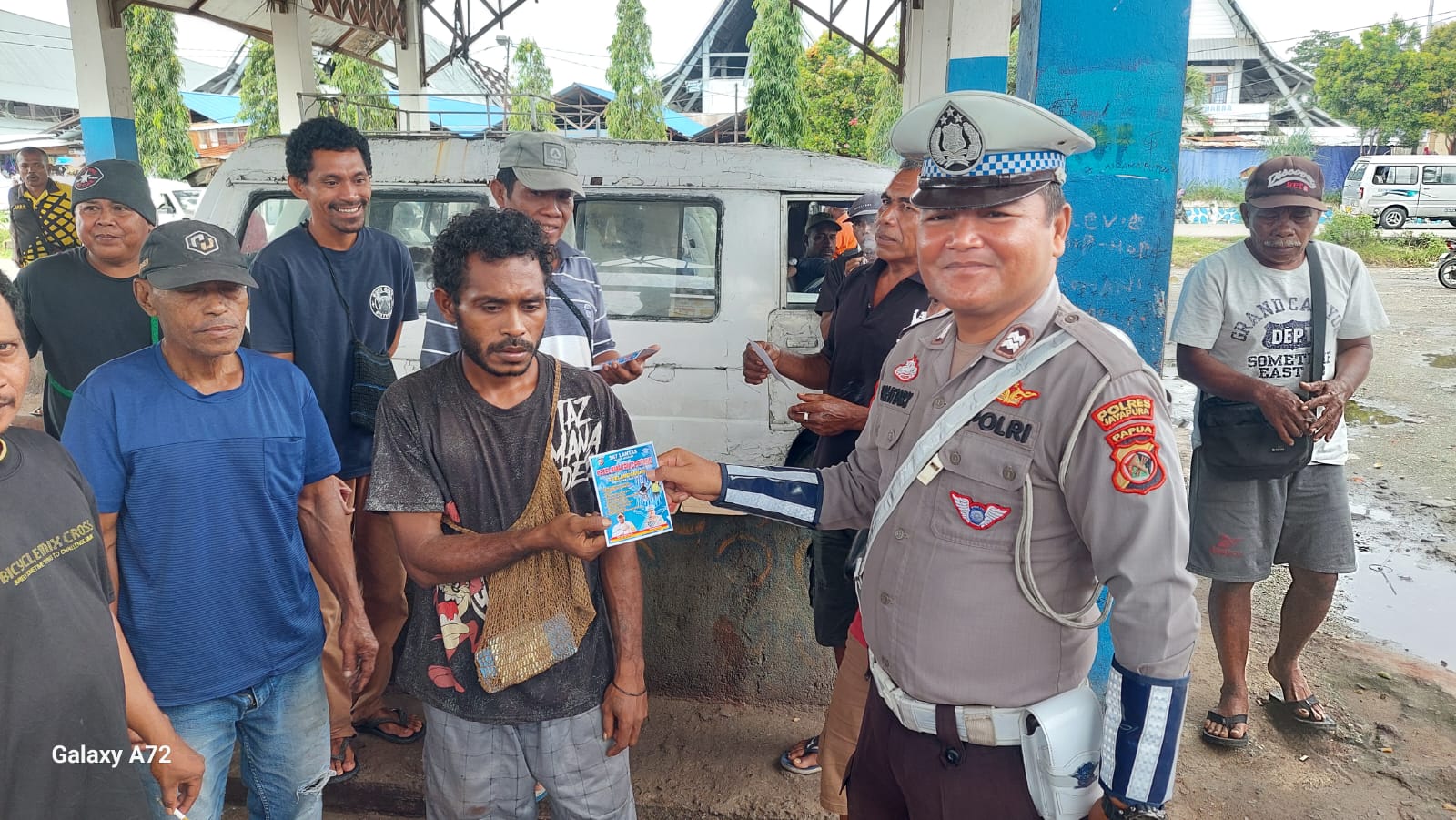 “Personel kami menyambangi para sopir taksi angkutan pedesaan yang sedang menunggu antrian penumpang, kemudian memberikan edukasi dan himbauan terkait pentingnya tertib berlalu lintas dalam Operasi Keselamatan Cartenz 2026,” ujar AKP Robertus Rengil.