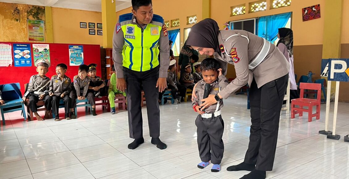 Lombok Tengah (NTB),ikagawanews.id – Satuan Lalu Lintas Polres Polres Lombok Tengah melaksanakan sosialisasi disiplin lalu lintas sejak dini kepada anak-anak di PAUD (Pendidikan Anak Usia Dini) Muli Munti Kecamatan Praya Barat.