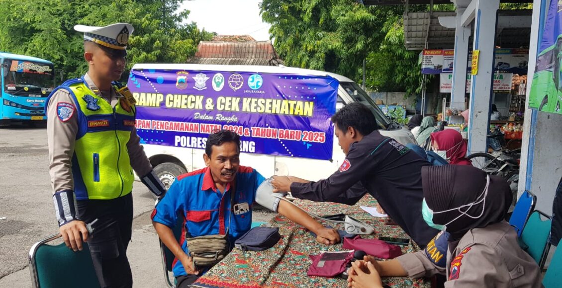 REMBANG,ikagawanews.id – Satlantas Polres Rembang Polda Jateng menggelar ramp check dalam rangka persiapan Natal dan Tahun Baru (Nataru) 2024 di Terminal Kota Rembang Kabupaten Rembang, Selasa (10/12/2024) pagi.