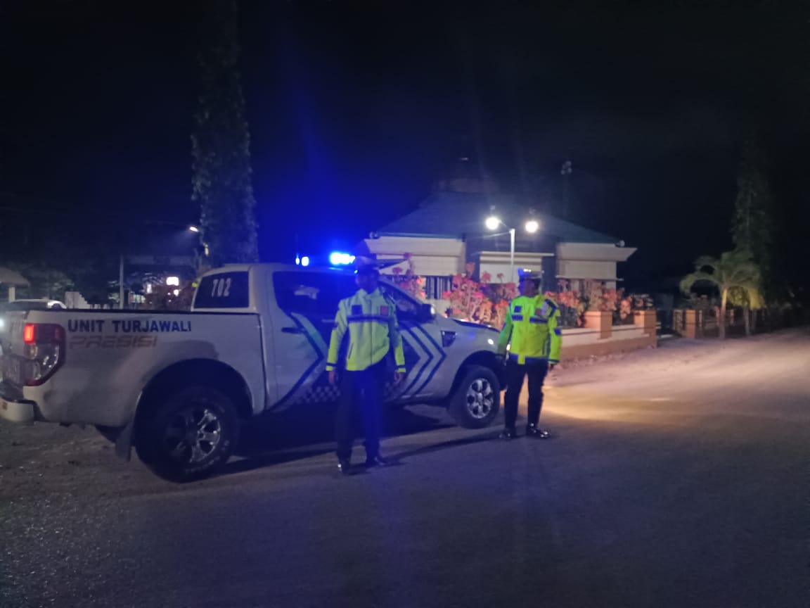 Personel Satlantas Polres Sinjai melaksanakan Patroli Malam guna memberikan rasa aman dan nyaman kepada warga serta mencegah tindak kejahatan di malam hari khususnya yang terjadi dijalan raya.