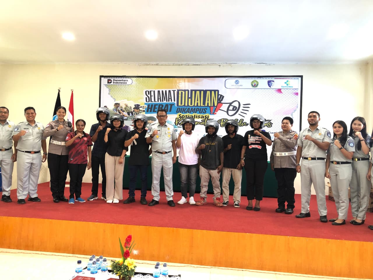 Kegiatan yang berlangsung mulai pukul 09.30 tersebut diikuti oleh sekitar puluhan mahasiswa dengan menghadirkan narasumber dari Satuan Lalulintas Polresta Jayapura Kota bersama PT. Jasa Raharja Provinsi Papua, dan Dinas Kesehatan Kota Jayapura.