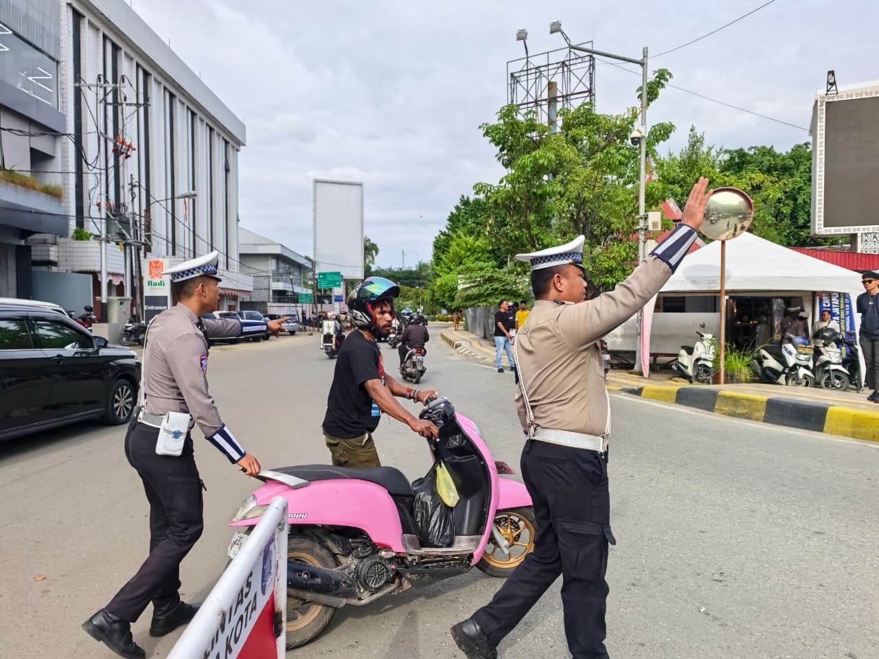 Kegiatan yang berlangsung dipusatkan di Jl. Percetakan dan Jl. Irian tepatnya di depan Pos Yasmin dengan dipimpin langsung oleh Kasat Lantas Polresta Jayapura Kota, AKP Muhammad Akbar, S.Sos, beserta personel gabungan lainnya.