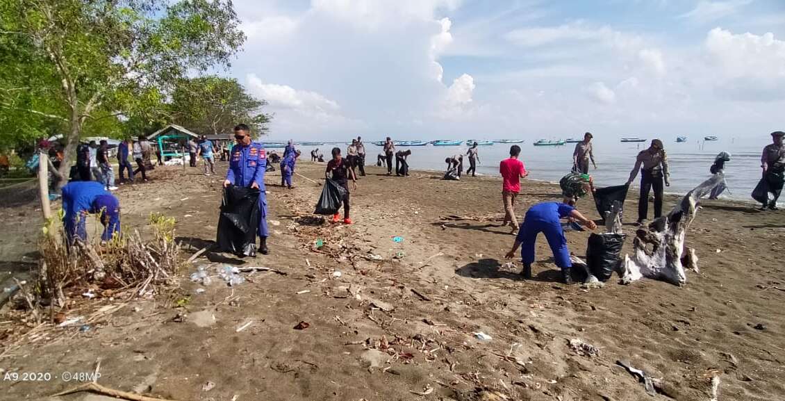 Dalam kegiatan personel bergotong royong, bahu membahu membersihkan di sepanjang Pantai Marana dengan memungut sampah mulai dari plastik, botol air minum dalam kemasan, kertas dan lainnya yang bertebaran di pantai langsung dipungut dan dimasukan ke tong sampah.