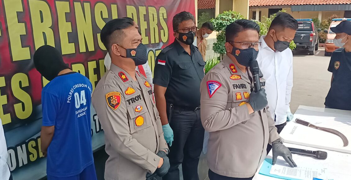 CIREBON KOTA,ikagawanews.id – Ancaman hukuman penjara setidaknya 5 Tahun, menanti DD (Pelaku pembacokan), 17 th yang tercatat masih pelajar di salah satu SMK di kota cirebon. Pelaku sendiri beralamat di Ds. Mertasinga Kab. Cirebon. Pelaku DD ini sudah melakukan tindak pidana penganiayaan kepada korban AP, Lk, 19 th, pelajar, Blok Pecantilan, Ds. Pamijahan Kec. Plumbon Kab. Cirebon. Dengan cara pelaku membacok korban dengan celurit pada hari Jumat tanggal 28 Januari 2022 sekira Pkl.11.50 Wib di Jl. Tuparev (Depan SMK Muhammadiyah). Hal ini terungkap dalam Konferensi pers dipimpin Kapolres Cirebon Kota Akbp M. Fahri Siregar, SH.SIK.MH. Senin (31.01.22). Jam 13.00 wib