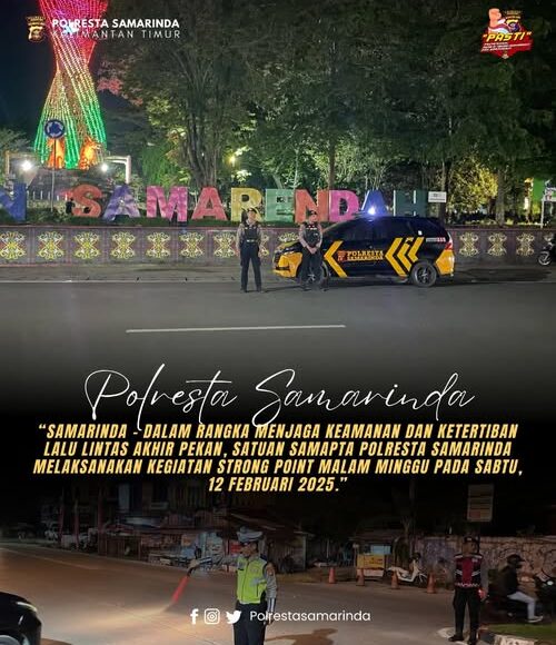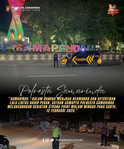SAMARINDA,ikagawanews.id – Dalam rangka menjaga keamanan dan ketertiban lalu lintas akhir pekan, Satuan Samapta Polresta Samarinda melaksanakan kegiatan Strong Point Malam Minggu pada Sabtu, 12 Februari 2025.