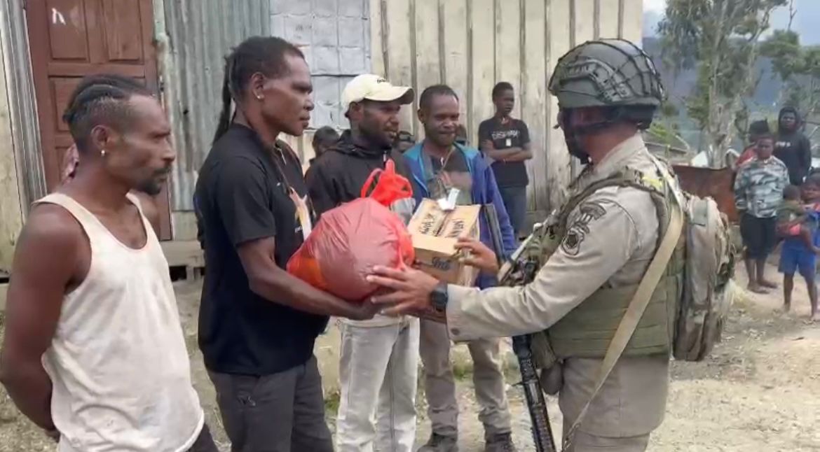 Sementara itu, di wilayah Sektor Intan Jaya, kegiatan sosial juga dilaksanakan oleh personel Satgas yang dipimpin Bripka Sudomo dengan memberikan bantuan bahan makanan (bama) kepada masyarakat yang sedang mengalami duka.