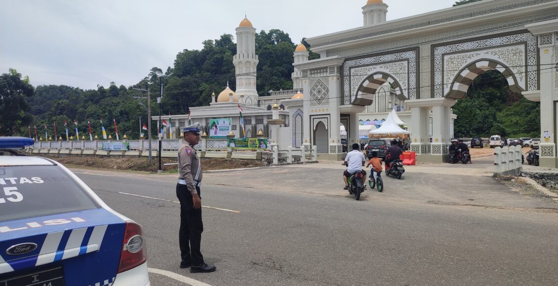 Calang,ikagawanews.id – Dalam rangka menjaga keamanan, keselamatan, ketertiban, dan kelancaran lalu lintas (Kamseltibcarlantas) bagi masyarakat, Satlantas Polres Aceh Jaya melaksanakan pengamanan dan pengaturan arus lalu lintas saat pelaksanaan Shalat Jumat di Masjid Agung Baitul Izzah, Desa Dayah Baro, Kecamatan Krueng Sabee, Kabupaten Aceh Jaya, Jumat, 27 September 2024.