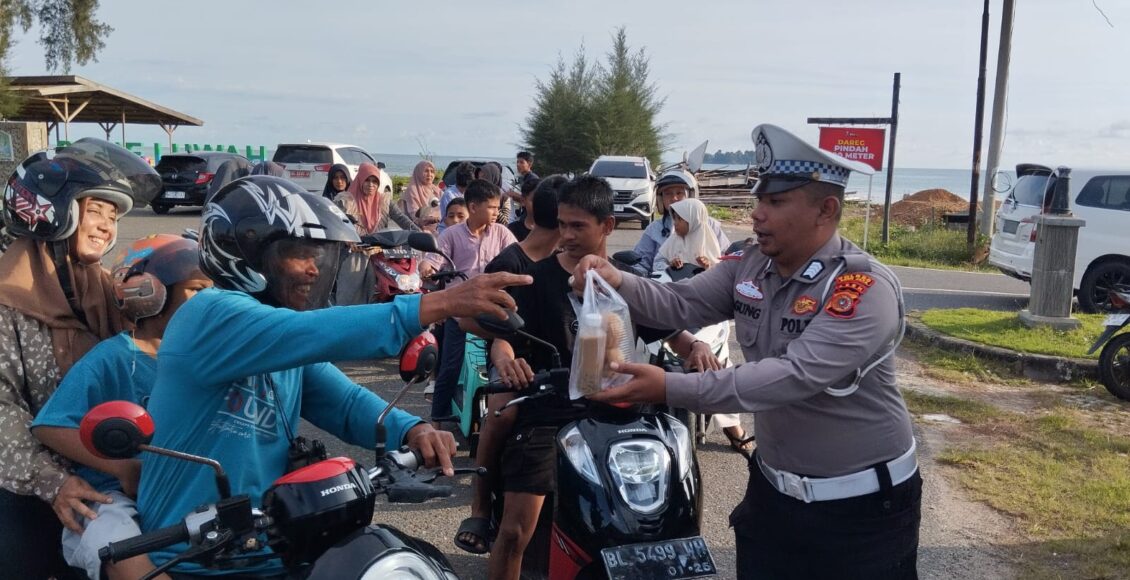 Satlantas Polres Aceh Jaya Berbagi Takjil dan Edukasi Keselamatan Lalu Lintas di Bulan Ramadhan