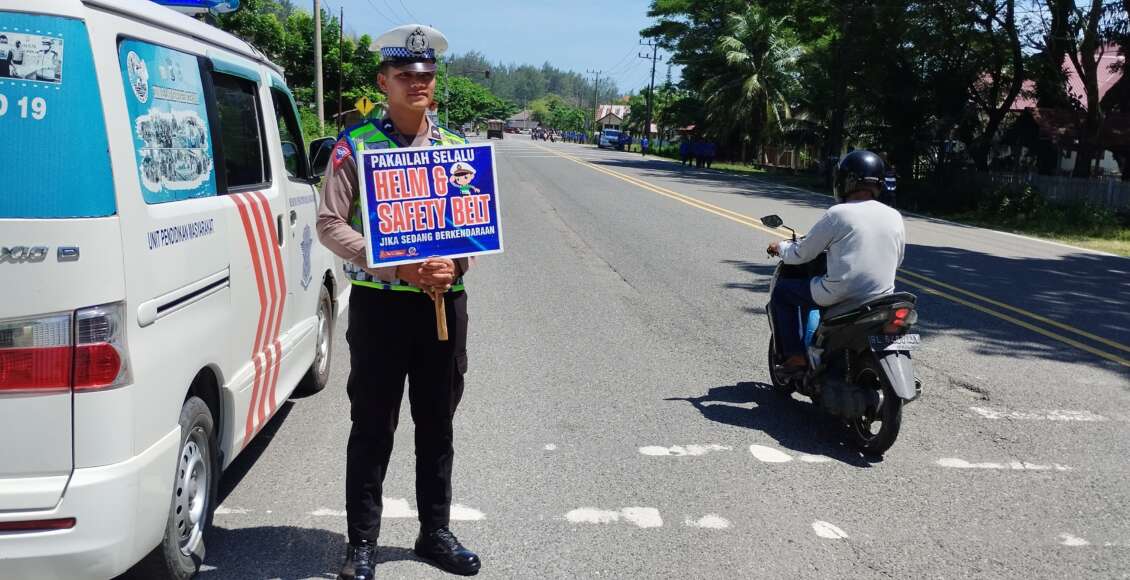 Kegiatan patroli berlangsung di Jalan Banda Aceh-Meulaboh, Kecamatan Krueng Sabee, Kabupaten Aceh Jaya, dengan melibatkan Kanit Kamsel Satlantas Polres Aceh Jaya dan Banit Kamsel Satlantas Polres Aceh Jaya. Dalam patroli ini, personil SatLantas secara aktif memberikan himbauan dan edukasi kepada para pengguna jalan mengenai pentingnya keselamatan berlalu lintas dan penggunaan helm.