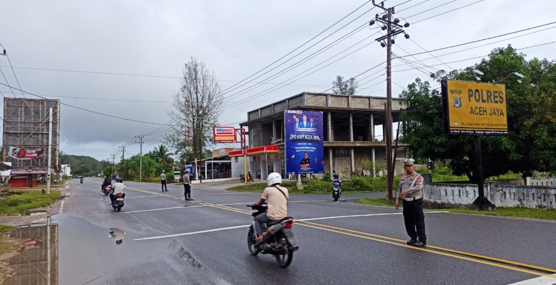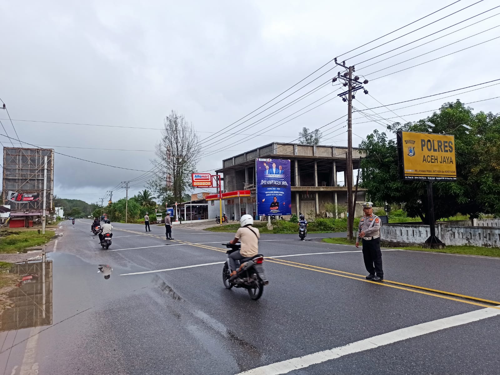 Satlantas Polres Aceh Jaya Gelar Strong Point Pagi di Titik Rawan Kecelakaan dan Kemacetan, Serta Berikan Himbauan Keselamatan