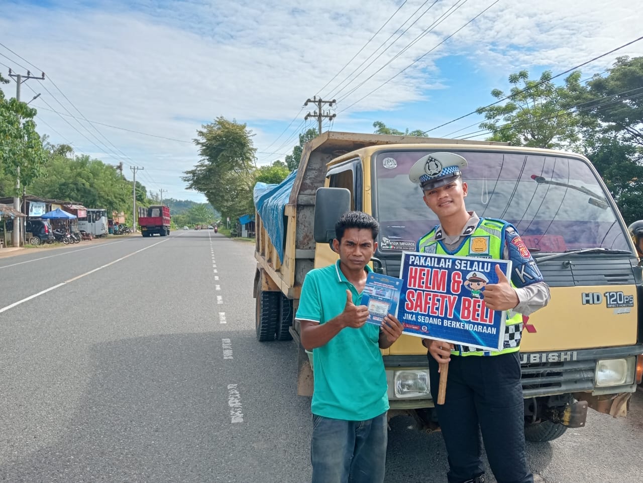 Satlantas Polres Aceh Jaya Himbau Pengguna Jalan Untuk Selalu Memakai Helm dan Safety Belt