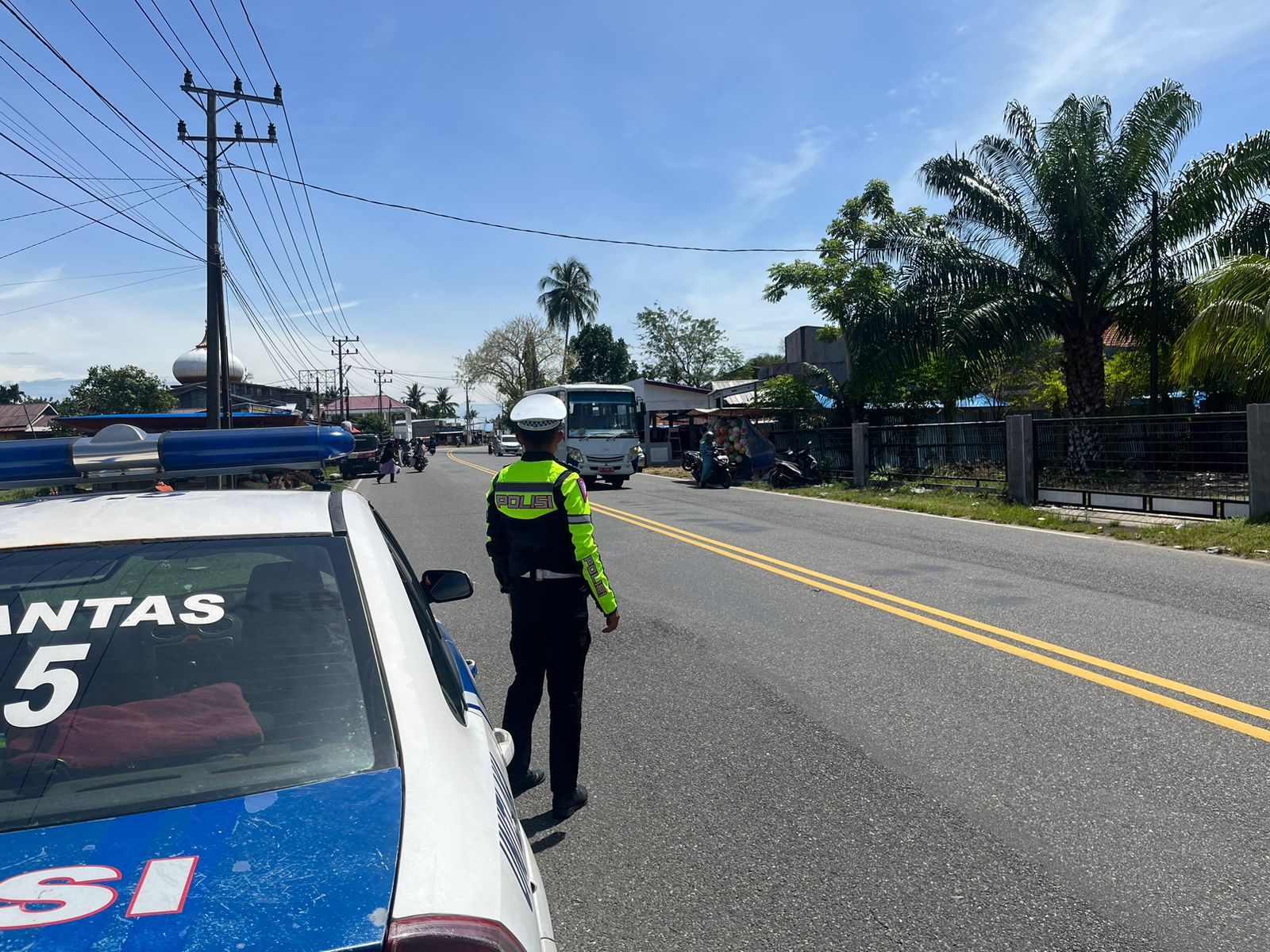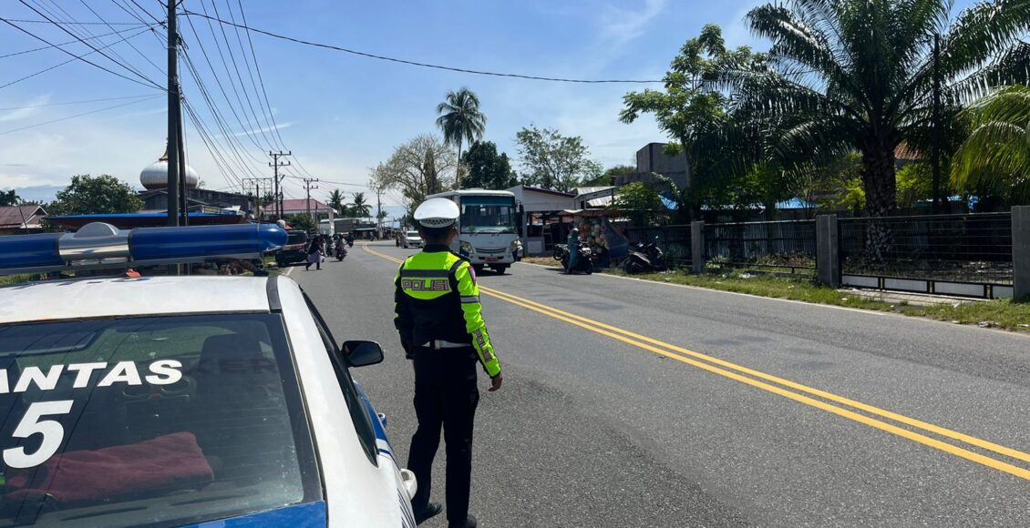 Satlantas Polres Aceh Jaya Laksanakan Pengaturan Lalin di Depan Pasar Tumpah Kayee Unoe Antisipasi Kemacetan Arus Lalu Lintas
