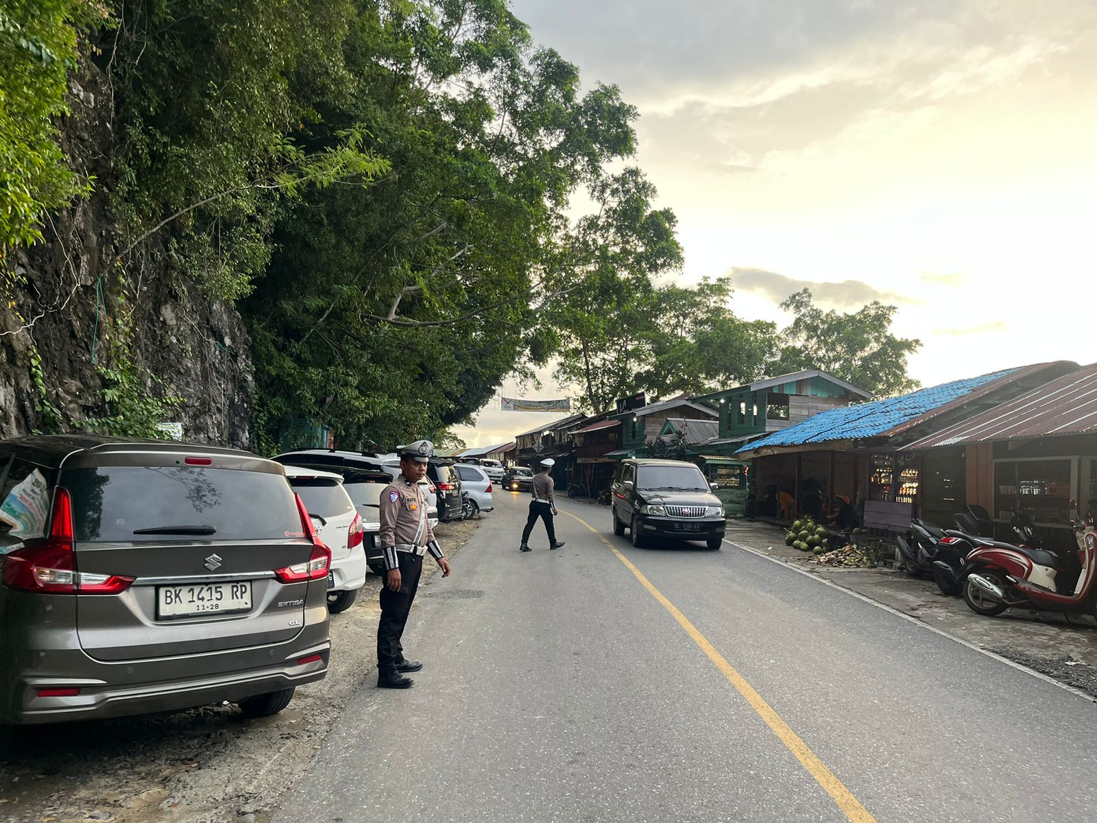Satlantas Polres Aceh Jaya Laksanakan Pengaturan Lalu Lintas di Puncak Gunung Geurute