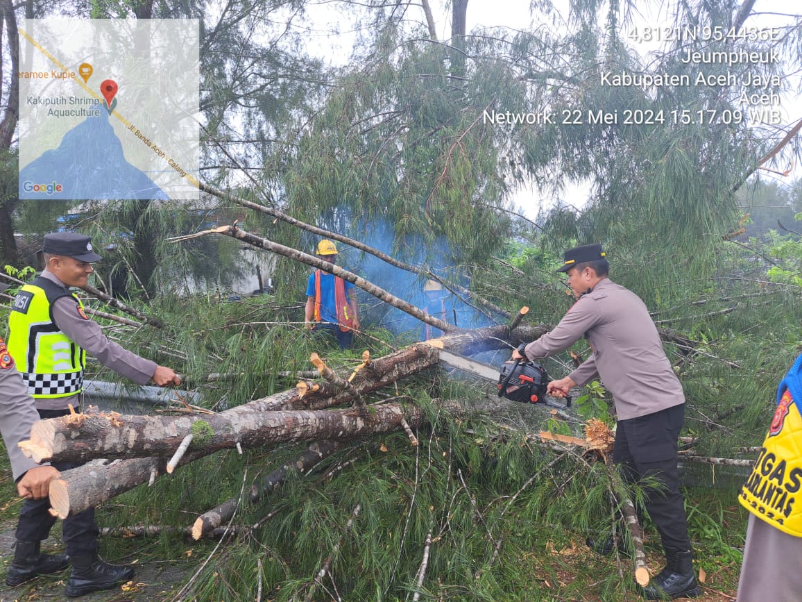 Kapolres Aceh Jaya, AKBP Andy Sumarta, melalui Kasatlantas Iptu Asari, menyatakan bahwa pohon tumbang tersebut sempat mengganggu arus lalu lintas di jalan nasional tersebut.
