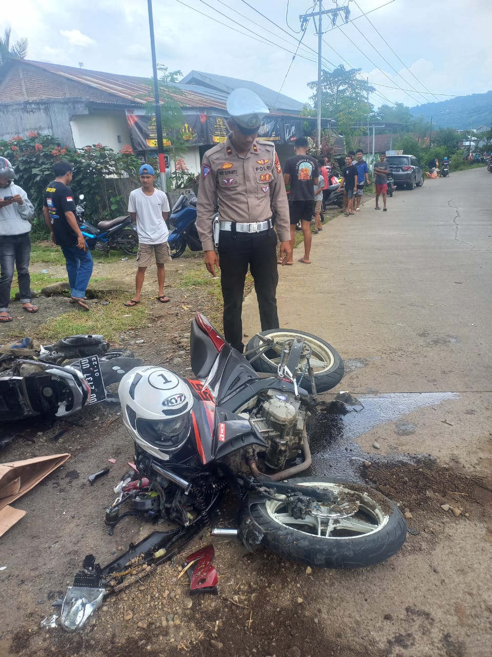 Kecelakaan tersebut melibatkan dua sepeda motor yang berujung pada kematian salah satu pengendara, Senin (15/04/2024).