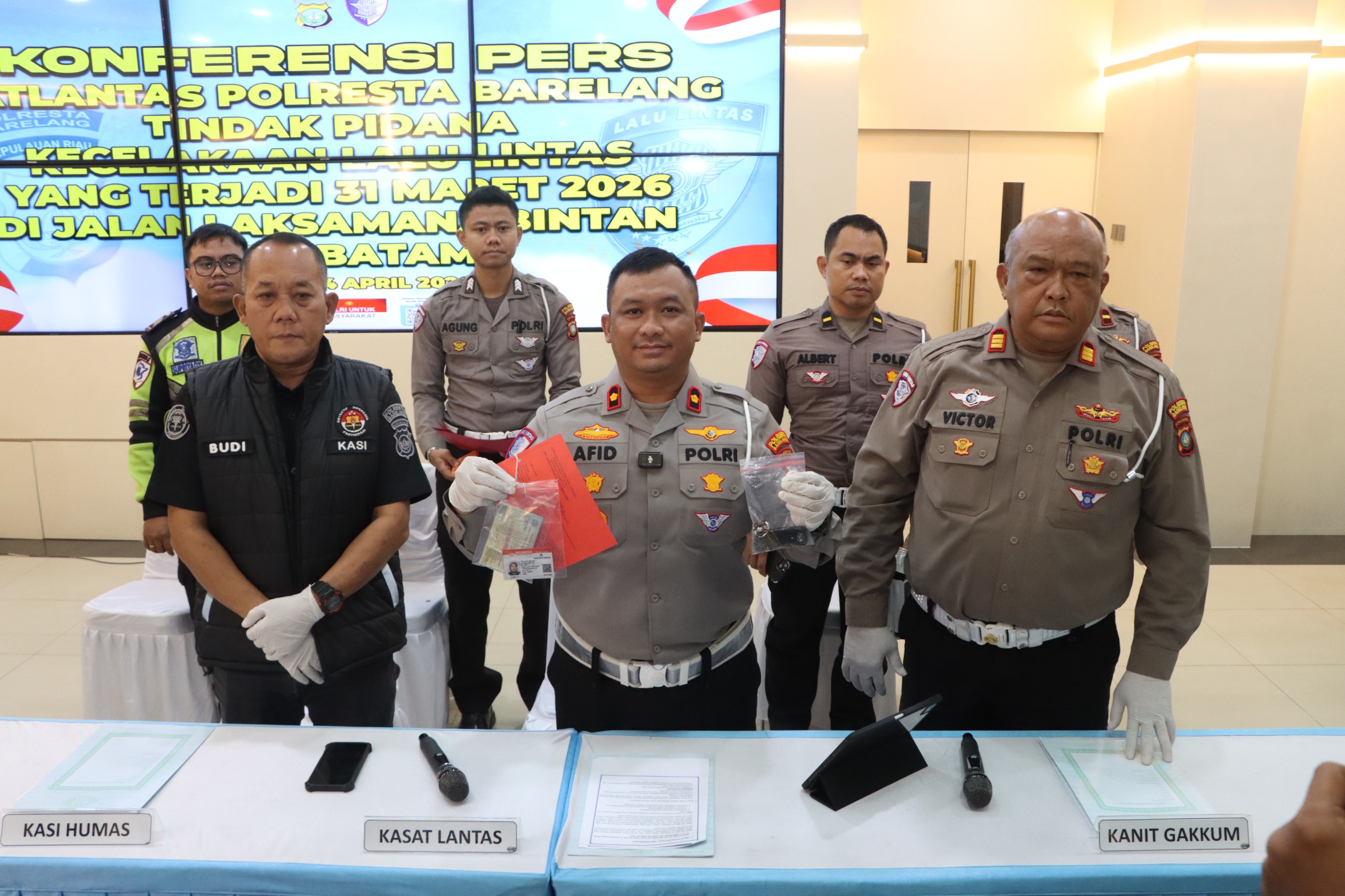 Dalam konferensi pers tersebut disampaikan bahwa peristiwa kecelakaan lalu lintas terjadi pada Selasa, 31 Maret 2026 sekira pukul 12.43 WIB di Jalan Laksamana Bintan, tepatnya di dekat SD Negeri 001 Batam Kota, Kecamatan Batam Kota. Kegiatan ini bertujuan untuk memberikan informasi secara transparan kepada publik terkait penanganan perkara serta langkah-langkah penegakan hukum yang telah dilakukan oleh Satlantas Polresta Barelang.