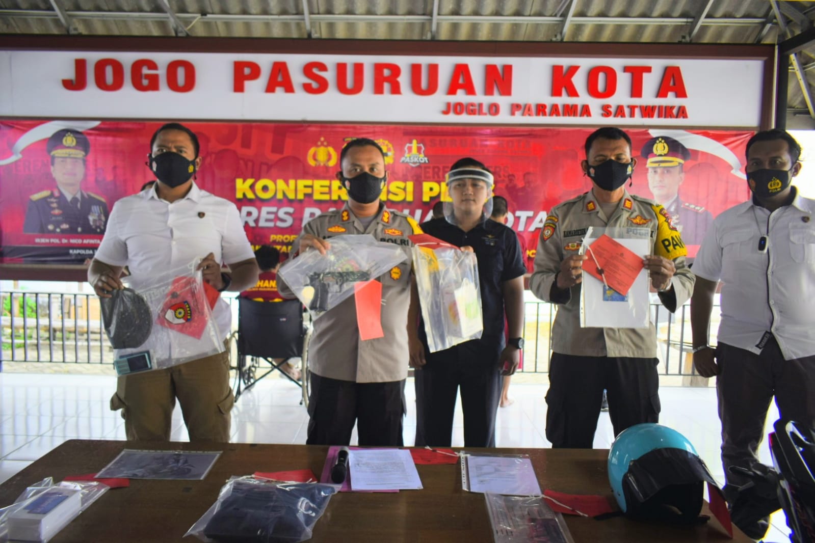 Press Release dipimpin langsung oleh Kapolres Pasuruan Kota AKBP Arman S.I.K M.SI dan didampingi oleh Kasat Reskrim, Kasi Humas Polres Pasuruan Kota, sejumlah anggota Sat Reskrim Polres Pasuruan Kota dan tersangka dan hadir juga sejumlah awak media yang ada di Kota Pasuruan.