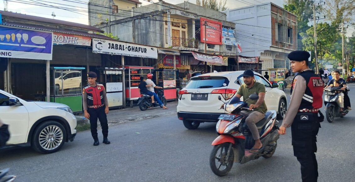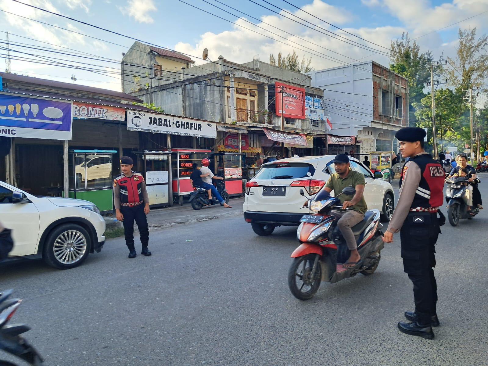 Satsamapta Polres Aceh Jaya Lakukan Pengaturan Lalu Lintas di Titik Ramai Jelang Berbuka Puasa