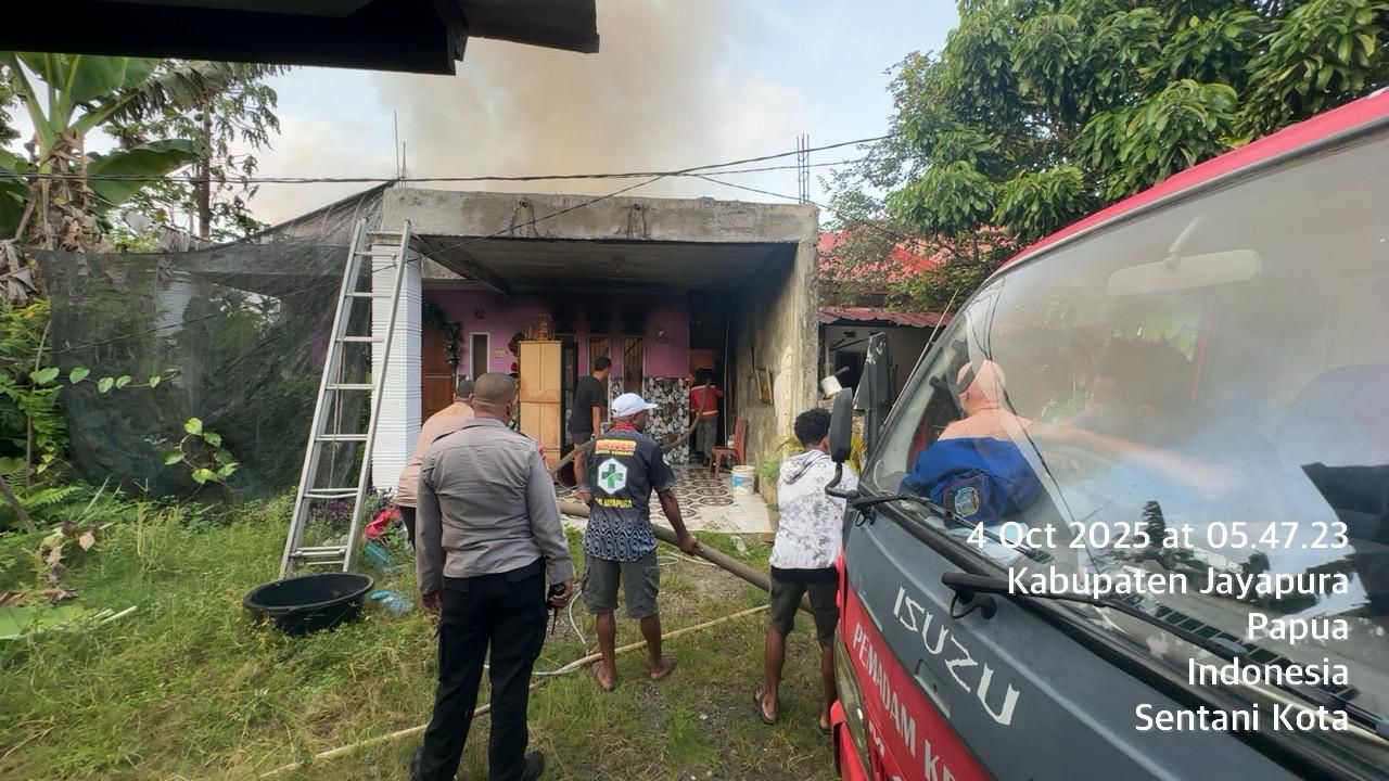 “Benar, pada pagi hari sekitar pukul 05.26 WIT kami menerima laporan masyarakat terkait adanya kebakaran rumah di Perumahan BTN Griya Muria Dunlop Sentani. Personel langsung bergerak cepat menuju lokasi untuk mengamankan TKP dan berkoordinasi dengan pihak pemadam kebakaran,” ujar Kapolsek.
