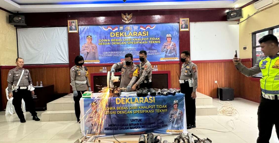GOWA, ikagawanews.id – Satuan Lalulintas Polres Gowa secara resmi mendeklarasikan Gowa bebas dari knalpot tidak sesuai spesifikasi teknis dalam upaya mewujudkan situasi Kamtibmas yang kondusif menjelang Pemilihan Umum (Pemilu) Damai tahun 2024.