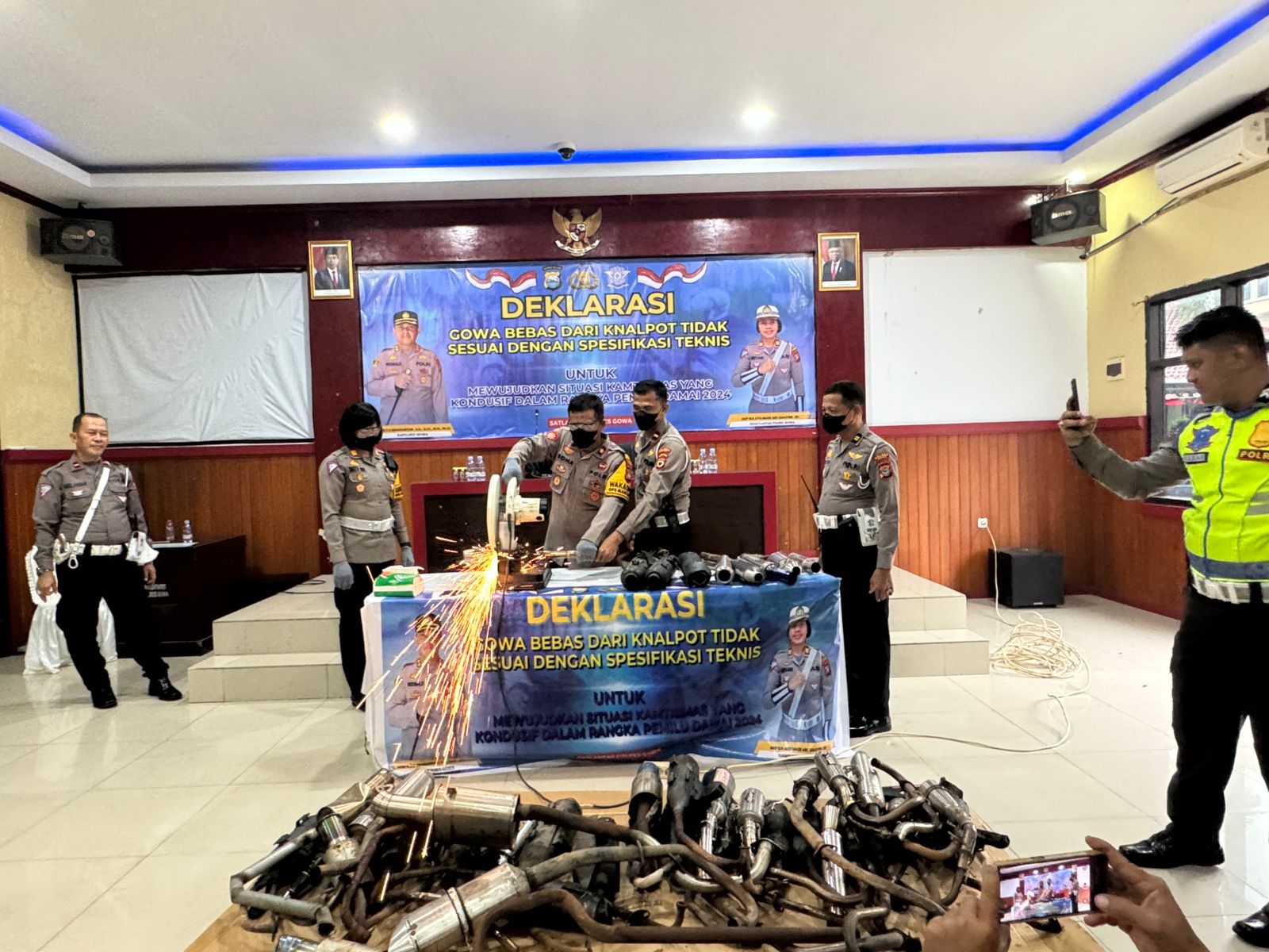 Satuan Lalulintas Polres Gowa Deklarasi Gowa Bebas Dari Knalpot Tidak Sesuai Spesifikasi Teknis untuk Pemilu Damai 2024