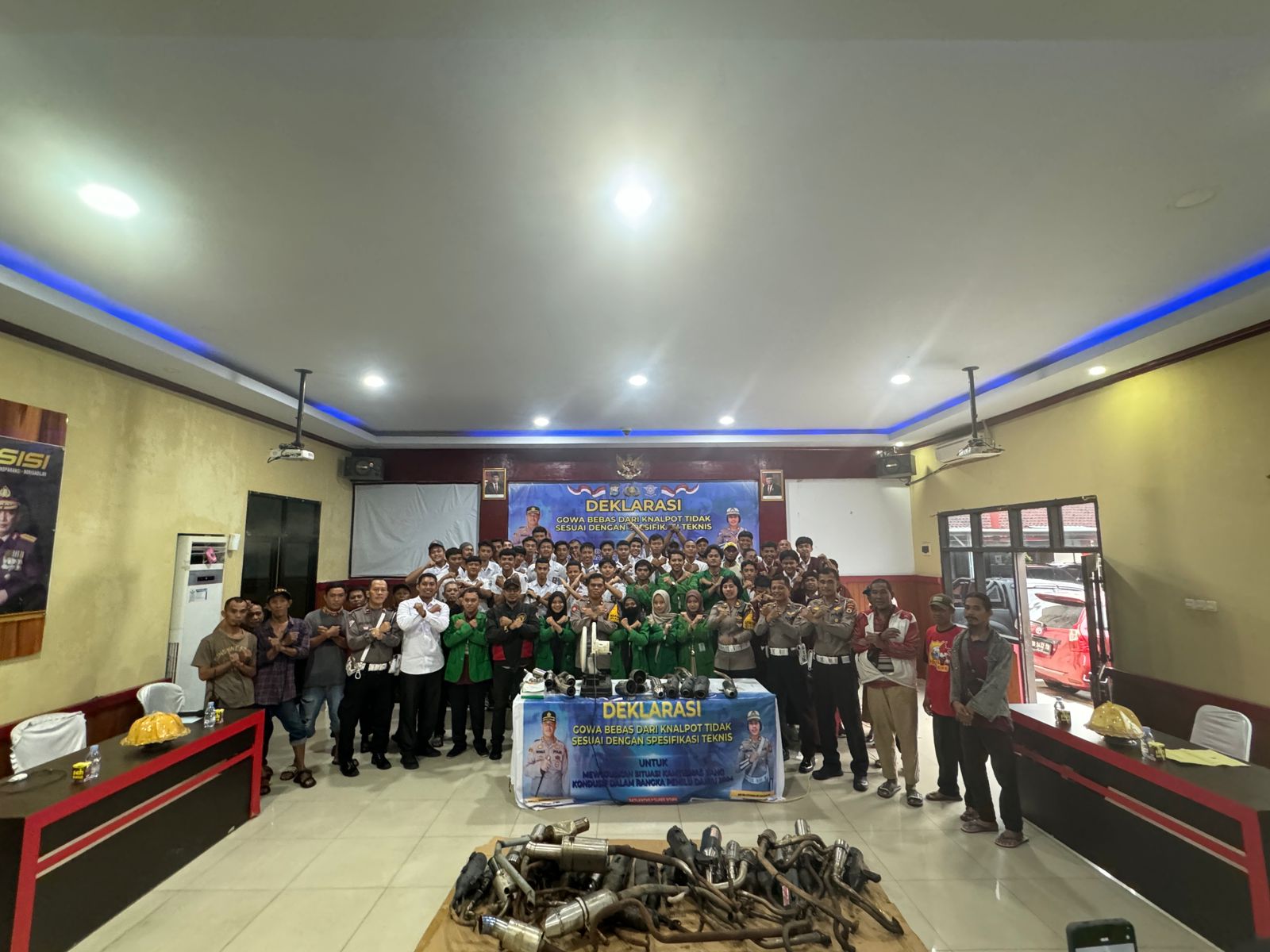 Dalam kegiatan tersebut, dihadiri oleh para pelajar, mahasiswa, dan pengendara bentor, puluhan knalpot yang tidak sesuai spesifikasi teknis dimusnahkan secara simbolis oleh Wakapolres Gowa KOMPOL Soma Miharja,S,Sos, MM, merupakan hasil dari operasi yang dilakukan oleh satlantas Polres Gowa.