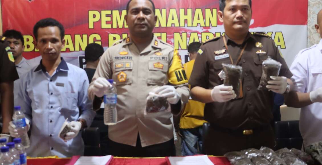 Pemusnahan dipimpin langsung Kapolres Jayapura AKBP Fredrickus W.A Maclarimboen, S.I.K., M.H didampingi Kasat Narkoba Iptu Mohamad Imran, S.E., MH, KBO Narkoba Ipda Aswan Syarif., S.H dan Jaksa Penuntut Umum Kejaksaan Negeri Jayapura Muhammad Arifin, SH dan Yosef., S.H., M.H.